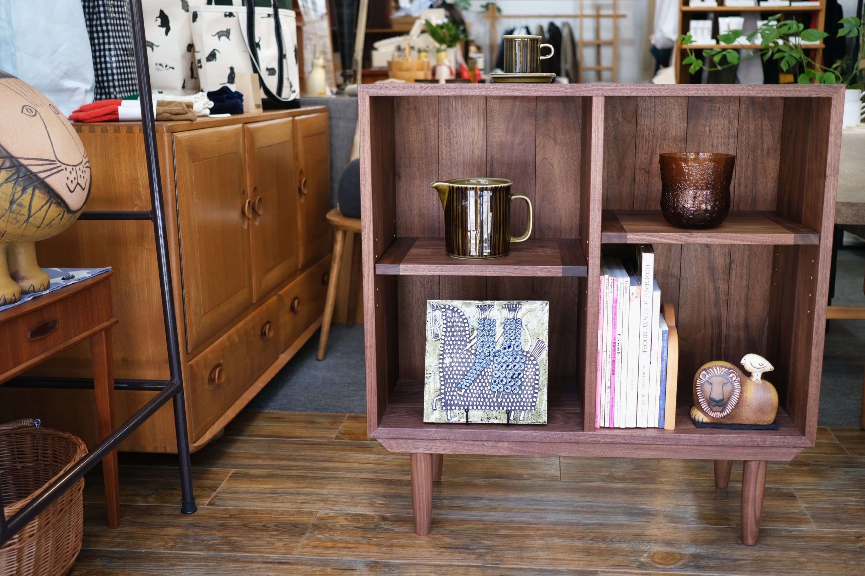| 11月18日 滋賀を拠点に、オーダーメイドの家具や店舗什器などを製作されている近藤真さんによる工房、tribute からウォールナット製の本棚が届きました。 昨年の夏と秋に入荷して大変好評だったこちらの本棚。 コンパクトなサイズ感が程よく(W750×H630×D300)は材料にウォールナットの無垢材を使用。 背板まで無垢材を使用し、tributeらしいこだわり満載で仕上がっています。 tribute / ウォールナット製本棚 ※価格など詳細は店頭にて |