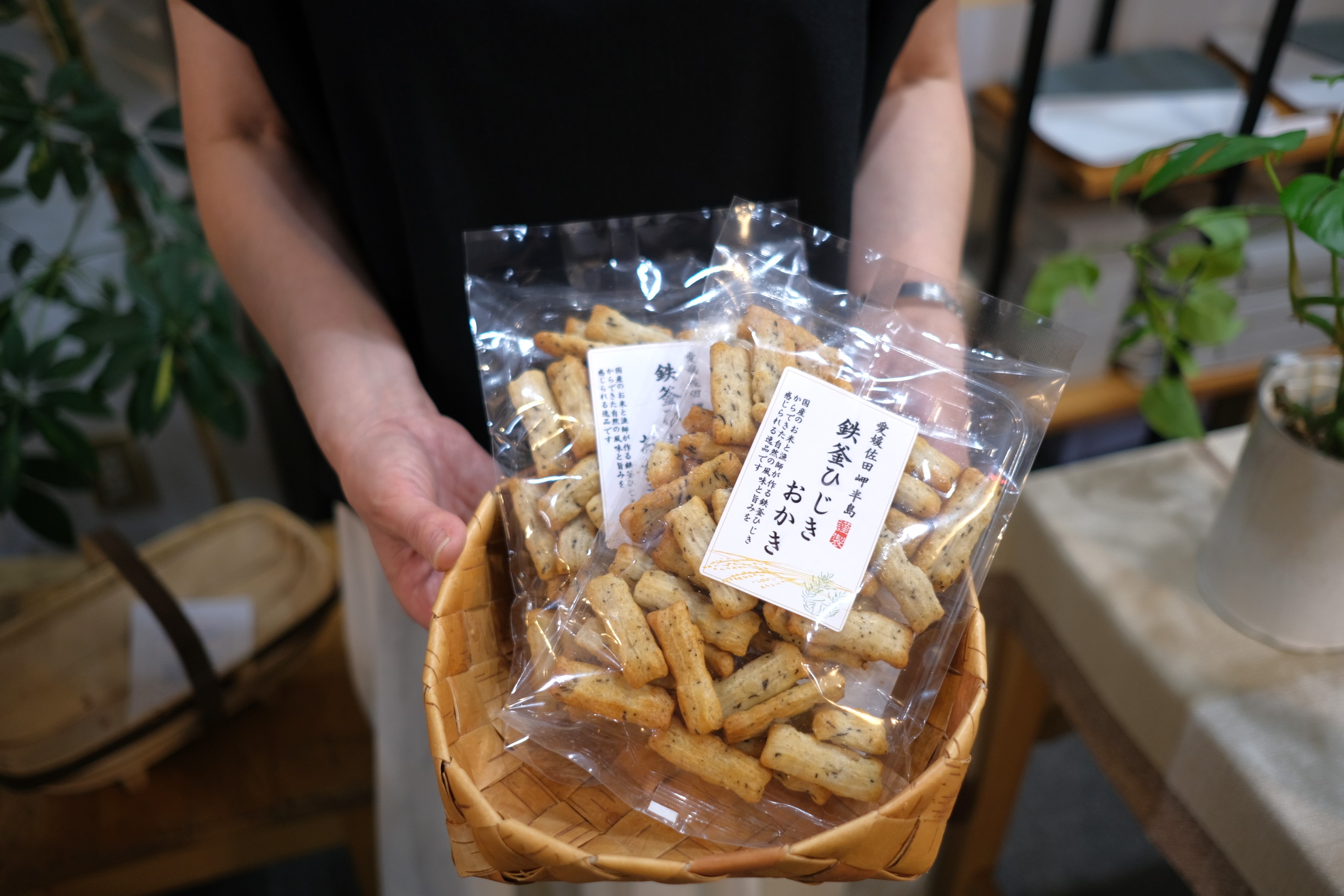 | 9月8日 愛媛、佐田岬半島伊方町の漁師『由井水産さん』が昔ながらの製法で作る"鉄釜ひじき"を使用し、同じ愛媛、西条の おかきメーカー「東陽製菓」がてがけた「鉄釜ひじきおかき」が入荷です。 国産のお米と、漁師が丹精込めて作った鉄釜ひじきからできた自然の風味と旨みをお楽しみください。 (商品名をクリックするとオンラインページへジャンプします) 鉄釜ひじきおかき 70g ¥432 (税込) |